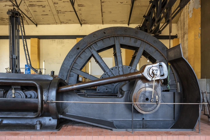Der Gustavschacht II war ein Doppeltrum-Schacht, ausgestattet mit zwei unabhängigen Förderanlagen. Deshalb besitzt auch das Maschinenhaus eine Doppelbauweise. Während die Südmaschine leider verschrottet wurde, ist die Nordmaschine in außergewöhnlich gutem Zustand erhalten.